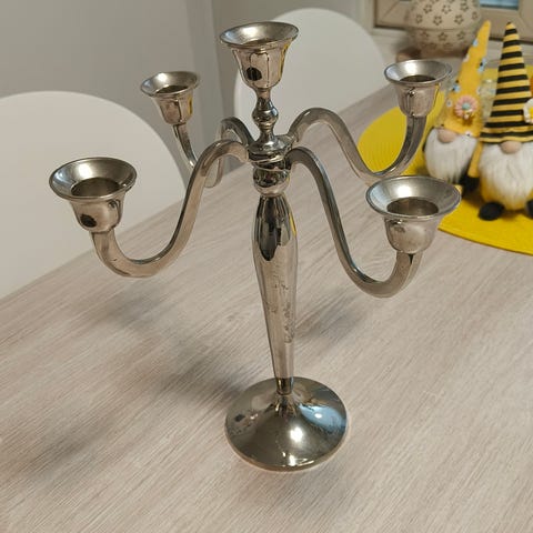 Myydään hyväkuntoinen metallinen kynttilänjalka. Kynttilänjalassa on paikka neljälle kynttilälle. Hitsauskohdat näkyvät jonkun verran ja yhden kynttilän jalan kohdalla kaksi pientä ruostekohtaa näkyvissä.