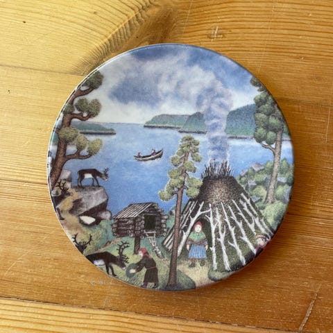 Andreas Alarieston seinälautanen, Lappi-lautanen. Arabian keramiikkaa. Halkaisija 23 cm. Kunto on erinomainen, ehjä.