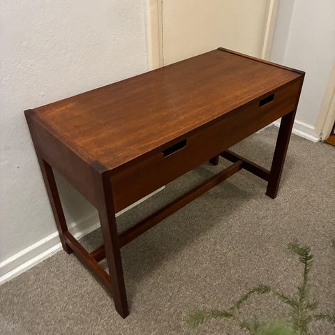 Monikäyttöinen ja ajan patinoima luukki. Pöydän pinnassa pientä kulumaa siellä täällä. Sopii pienenpäänkin tilaan.