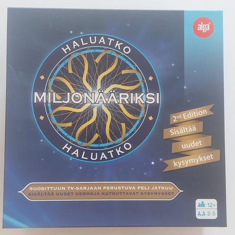 Alga Haluatko Miljonääriksi lautapeli perustuu suosittuun televisio-ohjelmaan. Peli sisältää kysymyksiä ja vastauksia, jotka testaavat pelaajien tietämystä eri aihealueilta. Sopii useammalle pelaajalle ja tarjoaa viihdyttävän tavan pelata yhdessä.
