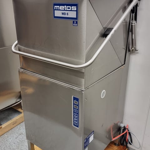 Metos Master astianpesukone, jossa on ruostumattomasta teräksestä valmistettu runko. Laite sisältää useita pesuohjelman säätimiä ja on varustettu teollisuuskäyttöön soveltuvalla virtaliittimellä (kolmivaihe/valovirta). Mukana myös astiakori ja korotuspöytä jolloin se on työskentelytasolla. Nouto länsi-Tampereelta