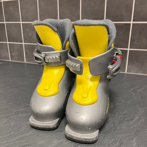 Hyväkuntoiset laskettelumonot. Koko 23/23,5. Pieni koko sopii noin 34 kengän kokoa käyttävän jalkaan.