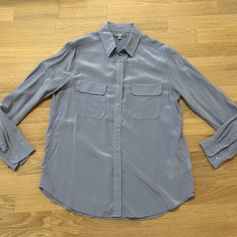 Uniqlo, Carine Roitfeld, M-koon musta silkkipusero. Piilonapitus ja trumpettihihat.