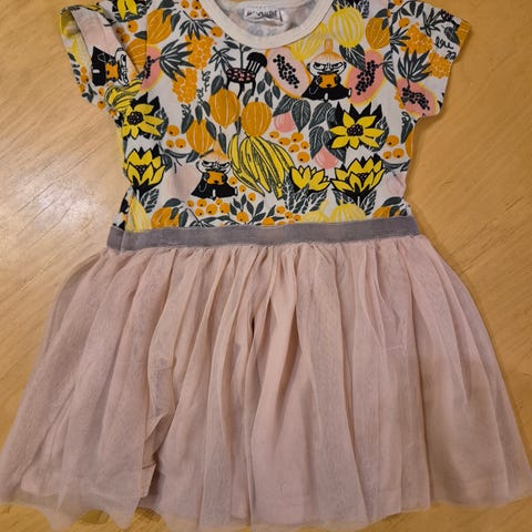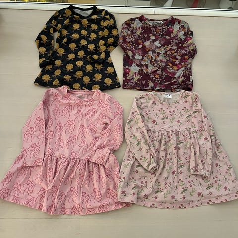 Myydään Name it kukkapaita kokoa 104, Ma-ia familyn 104 yksisarvismekko ja Muumimekko kokoa 98. Kaikki ovat olleet samaan aikaan käytössä. Kaikissa on hyvä ja ehjä kunto. Muumimekon valkoiset osiot ovat kauttaaltaan pesussa hiukan harmaantuneet uudesta, mutta muutoin mekko on siistissä käytetyssä kunnossa.