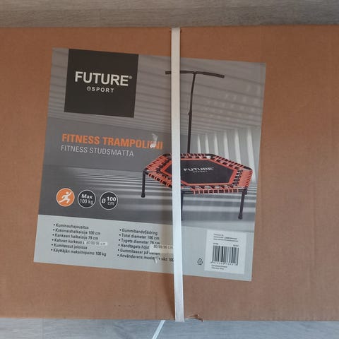 Myydään uusi fitness trampoliini. Tilattu, kasattu ja jäänyt kokonaan vaille käyttöä. Toisesta tangon käsipidikkeestä puuttui pieniä paloja jo uutena, en jaksanut reklamoida asiasta.