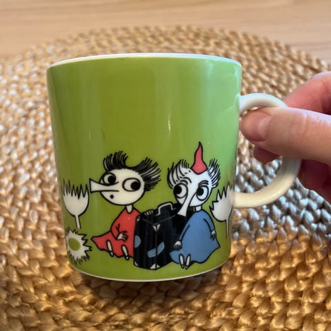Muumimuki Tiuhti ja Viuhti. Pieni valkoinen naarmu löytyy toiselta puolelta mutta muuten kunto erinomainen. Nouto Lauttasaaresta.