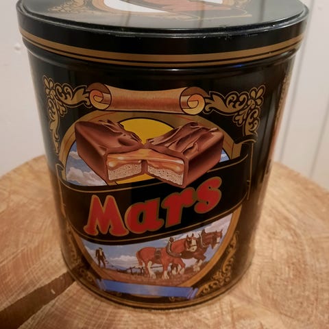 Myydään peltinen riisipurkki. Lie lähtöisin Venäjältä.