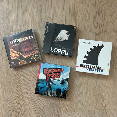 49 kpl äänikirjoja suurin osa ei kuunneltuja ja muoveissa, kirjojen ovh . N 20-40e kpl , eli halvalla lähtee 150e tai tarjoa