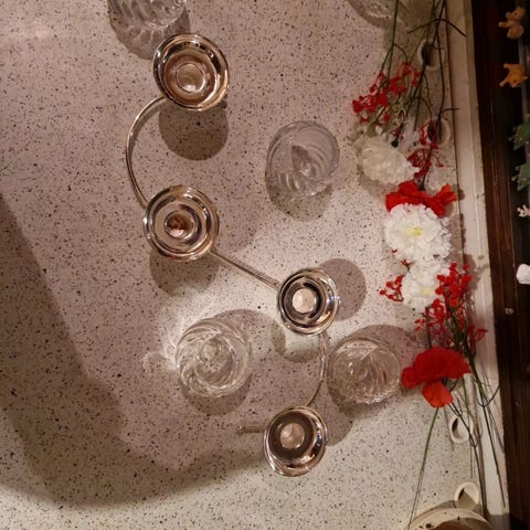Partylite hopeaköynös kynttiläjalka laseja ei ole.