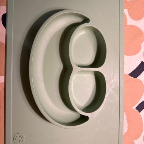 Espz happy mat ruokailualusta 5€ ja vihreä imukuppi-silikonilautanen 4€.