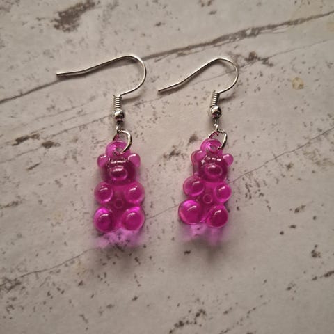 Uudet vaaleanpunaiset nalle-korvakorut.