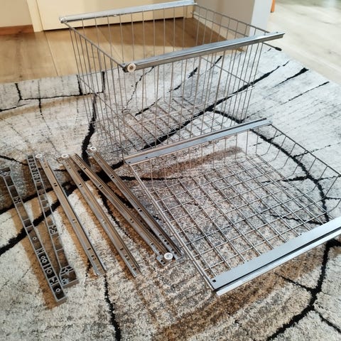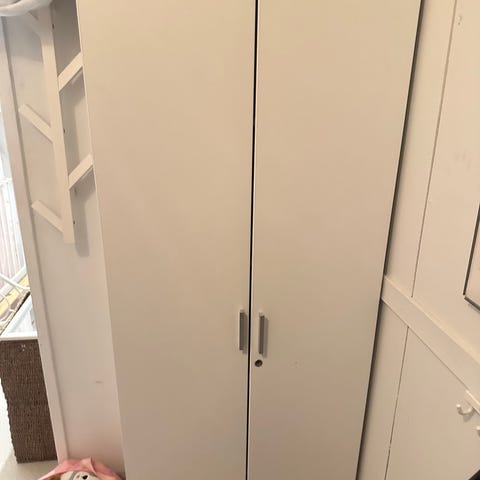Annetaan eteisen kaappi / vaatekaappi. Kolme yläkaappia, kaksi vetolaatikkoa, kaapeissa rekkitangot. Keskimmäisessä ovessa peili. Käytön jälkiä on, mutta yleisilmeeltään siisti. Nopeimman noutajan mukaan Jäälistä.
