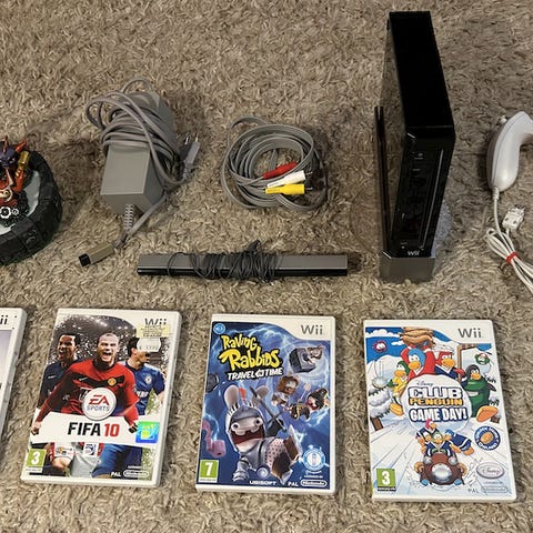 Nintendo Wii konsoli, Nintendo Wii Fit & Balance Board tasapainolauta, Guitar Hero ohjaimia 2 kpl. Guitar Hero: Warriors of Rock ja Wii Fit -pelit. HUOM. Perusohjaimia vain 1kpl mukana. Nouto Raholasta tai voin toimittaa Pirkanmaan alueen sisällä