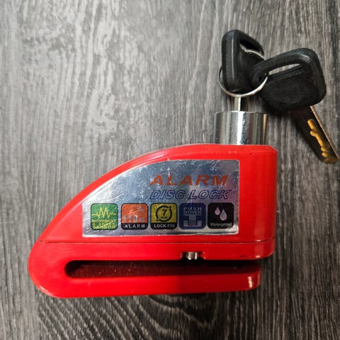 Kevyt ja kestävä levylukko, varashälytin liiketunnistimella ja alas painettavalla avaimella. Uusi avaamaton. On 2 kappaletetta myynnissä. Huom. Uuden hinta kaupassa 59e