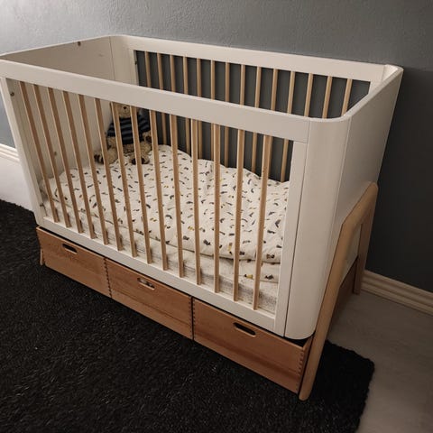 Myydään hyväkuntoinen, tukeva, tykätty ja kokopuinen valkoinen Troll Lukas pinnasänky 60cm x 120cm. Yhdellä sivulla pientä kulumaa hampaista ja yhden tumman jäljen bongasin yhdestä pinnasta. Kaiken kaikkiaan kuitenkin kunto on todella siisti. Sängyn pohja on säädettävissä kolmeen korkeuteen. Mukaan myös turvallinen juniorilaita, jolla lapsi pääsee itse sänkyyn ja sieltä pois (ei kuvissa). Juniorilaidalla sänky menee taaperosänkynä pitkään, lapsen pituudesta riippuen jopa 5-vuotiaaksi.