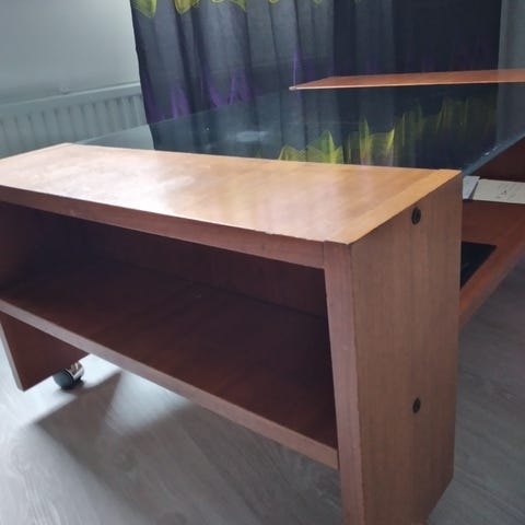 Tanskalaista vintagea 70-luvulta. Kaksi saman sarjan sohvapöytää. Toinen 74 cm x 74 cm, toinen 74 cm x 134 cm. Samanlainen kaakelikuvio molempien kannessa. Isompi on nyt varastossa jalat irroitettuna, mutta tarvittaessa voin liittää myös siitä kuvan.
