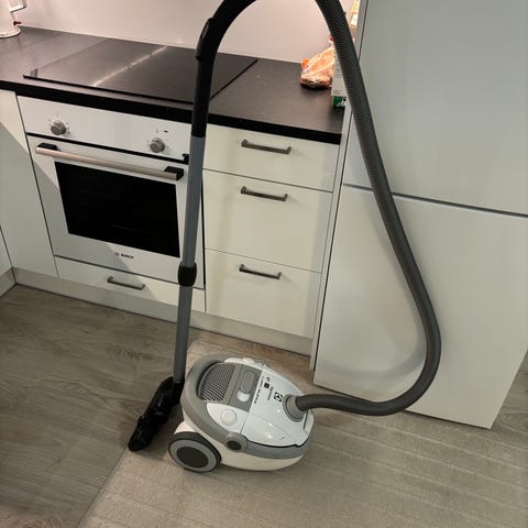 Bergenin toimiva varsi-imuri. Seinätelineen saa mukaan. Rakosuulake puuttuu.