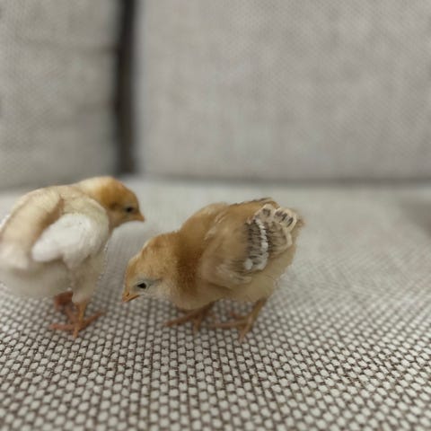 Tällainen kaksikko olisi valmis uuteen kotiin. Ikää heillä on hieman yli 2kk, ovat varmoja kanoja. Kyseessä on isojen rotujen risteytys: emona plymouth rock ja isänä faverolle. Tämän ansiosta ne ovat jo nyt mukavan kookkaita ja voidaan jo yhdistää rauhalliseen parveen.