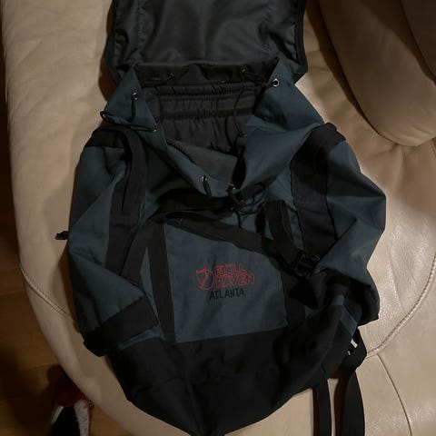 Fjällräven Reppu kangasreppu ruskeana, jossa on nahkaiset remmit. Reppu sisältää sisätaskuja ja suljetaan kahdella nahkaremmin avulla. Sisäpuoli kuminen, helppo pyyhkiä. Sopii monipuoliseen käyttöön ja arkipäivän kantamiseen. Eväs/retkeily laukku, jossa termoskannulle oma paikka.