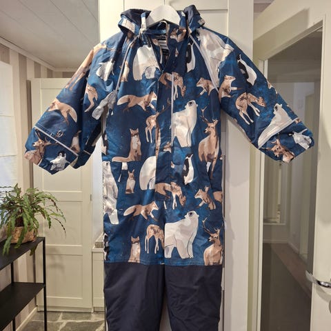 Myydään erittäin vähän käytetty, käytännössä uutta vastaava Jonathan-toppahaalari kokoa 122 cm. Ainoa selkeästi näkyvä käytön jälki on takapuolessa oleva naarmu, joka ei kuitenkaan ole läpi kankaan (kuva 4). Polvissa ei jälkiä, ja lahkeiden kuminauhat ehjät. Alaosa musta, yläosa kahta sävyä harmaata. Vaaleampi harmaa heijastavaa materiaalia, joka erottuu todella hyviä pimeällä (kuva 7 otettu salamalla ulkona). Savuton kanitalous.