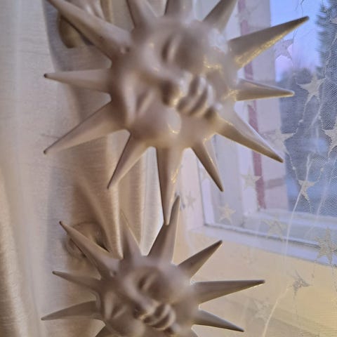 Katso myös muut ilmoitukseni :) Myynnissä myös kaksi valkoista aurinko-verhinpidikettä.