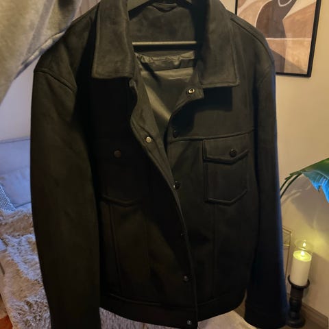 Zara takki miehille, koko XL. Väriltään vihreä ja valmistettu polyesteristä. Ulkotakki, jossa on vetoketjutaskut ja pehmustetut olkapäät.