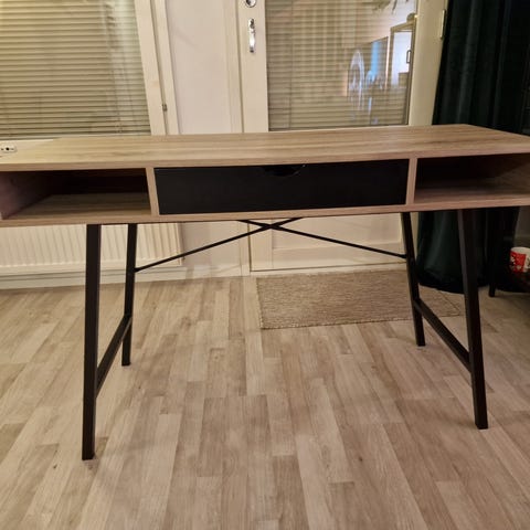 Työpöytä, hyväkuntoinen, muuton tieltä myydään. JYSK Vandborg https://jysk.fi/tyohuone/tyopoydat/tyopoyta-vandborg-60x120-vaalea-tammenvarinen-musta