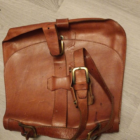 Pehmeää nahkaa oleva olkalaukku. Pikku tasku sisäpuolella. Ehjät metalli vetoketjut.