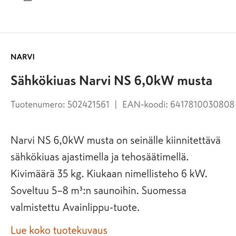 Mondexin laadukas sähkökiuas erillisine ohjain paneeleineen