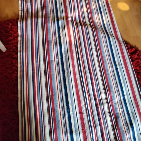 Jouluiset läpikuultavat raita/ruutukuvioiset verhot (2 kpl) punaisilla sidontanauhoilla. Tangolle on ripustuskuja (9,8 cm leveä).