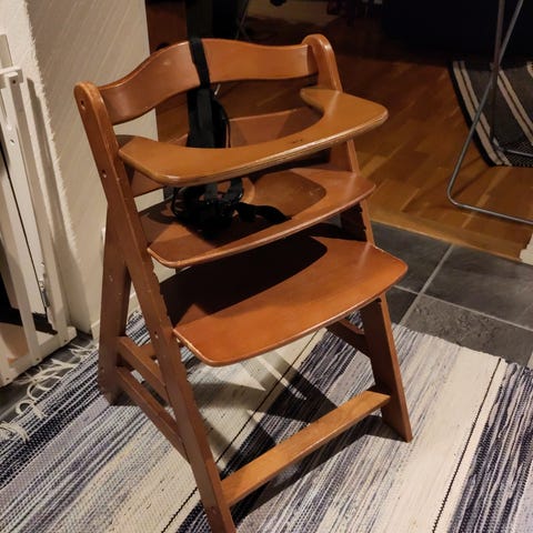 Hauck Syöttötuoli on valmistettu puusta. Se on suunniteltu lapsille syöttötuoliksi. Tuolissa on pehmusteet istuimella ja selkänojassa.
