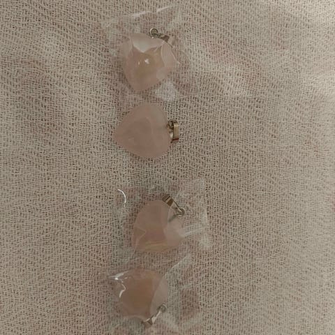 Ruusukvartsi Setti, kaulakoru ketjulla , pituus n.45cm Ja kirvakorut, joiden pituus n. 3 cm ja keimat on. Kaunis ja herkkä setti.