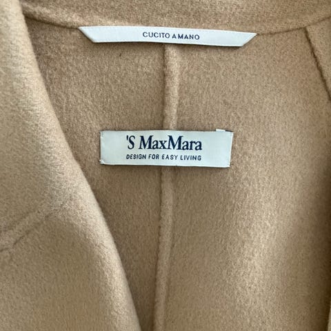 Upea Max Mara Studio villakangastakki. Koko IT 44, eli vastaa noin kokoa 38-40. Materiaali on 50% villa, 30% silkki ja 20% angoravilla. Mukana on turkiskaulus, jonka saa muutamalla harsopistolla halutessaan kiinnitettyä (tällä hetkellä siis irrallinen). Kuvassa minulla takki päällä, olen 177 cm pitkä.