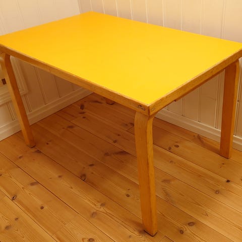 Myydään Artek (96) lasten pöytä ja tuolit settinä. Kalusteet on maalattu Diy-tyyliin, ei siis ammattilaisen toimesta. Setti sisältää vaaleanpunaisen puolipyöreän pöydän ja kolme vaaleankeltaista tuolia. Pöytä ja tuolit ovat tukevia ja tuolit kestävät myös aikuisen istumista. Kalusteet ovat olleet lastenhuoneessa eli niissä on käytön jälkiä, yleisilmeeltään siisti ja ihana kokonaisuus.