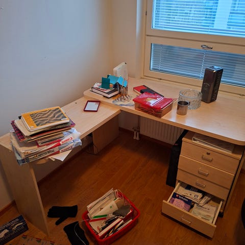 Annetaan Ikean Liatorp tietokonepöytä. Ilman pöydällä olevia tarvikkeita.