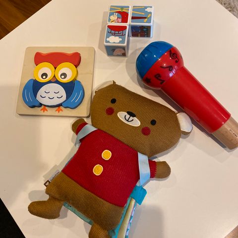 lastenlelut sisältävät pehmoleluja ja puisia palapelejä eri väreissä ja muodoissa. Lelut soveltuvat alle kouluikäisille lapsille ja on valmistettu pehmeistä ja kestävistä materiaaleista, kuten kankaasta ja puusta.