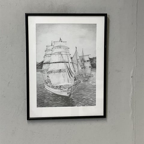 Hakusanat: piirros, purjelaiva, Paketoitava, musta kehys, meriaihe, klassinen taide
