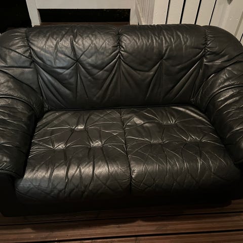 Myytävänä nahkasohva. Päälliset hyvää nahkaa ja. Siro ja soveltuu hyvin esim. koiraperheelle. Saa tarjota.