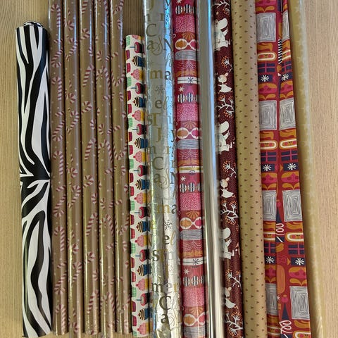 Myydään iso paketti jouluisia lahjapusseja / lahjakasseja ym lahjakasseja. Täysi rulla Muumi-lahjapaperia, muitakin jouluisia lahjapapereita mm. Marimekko. Jouluisia pakettitarroja.
