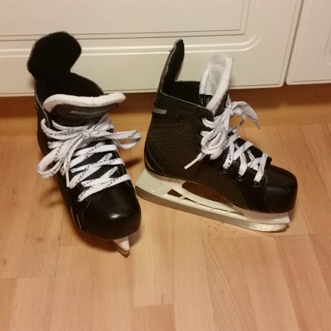 Hyvä kuntoiset, kevyet lasten luistimet. Koko 32 laadukkailla tuuk terillä. Muutama käytön jälki on, mutta hyvin menee seuraavalle, eikä haittaa menoa.