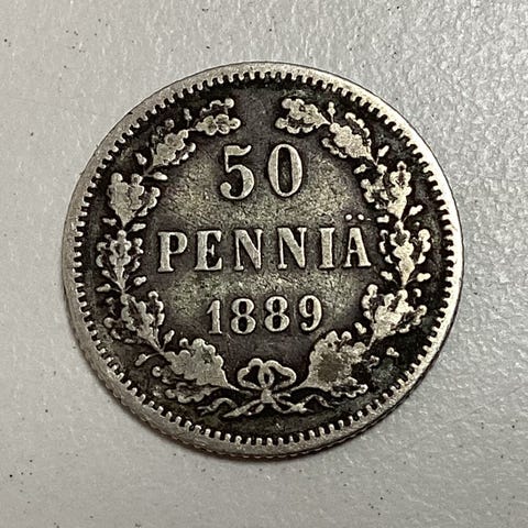 50 pennin hopearaha vuosilta 1890 ja 1917