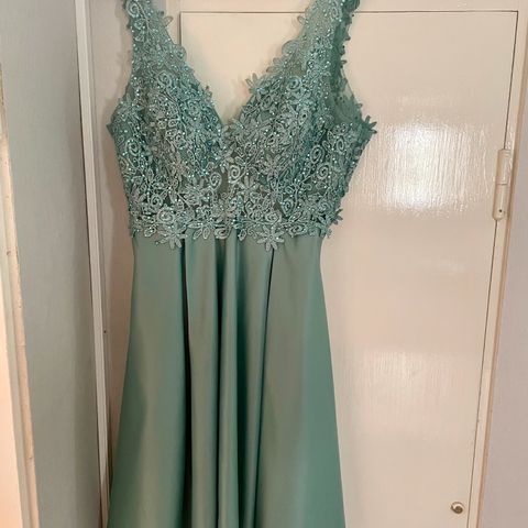 Instockista vihreä sinertävä rippimekko. Koko on m mutta pienenetty olkaimista (saa ratkottua m kooksi) ja pinennetty kaula-aukkoa joten sanoisin paremmin koko s.