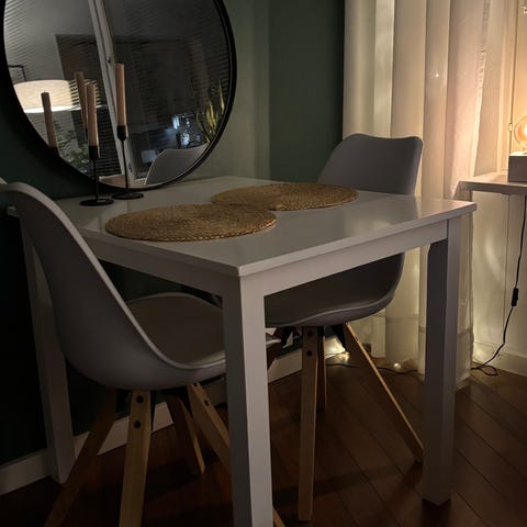 Täyspuuta, maalattu Tikkurilan Tiffany-sävyllä.