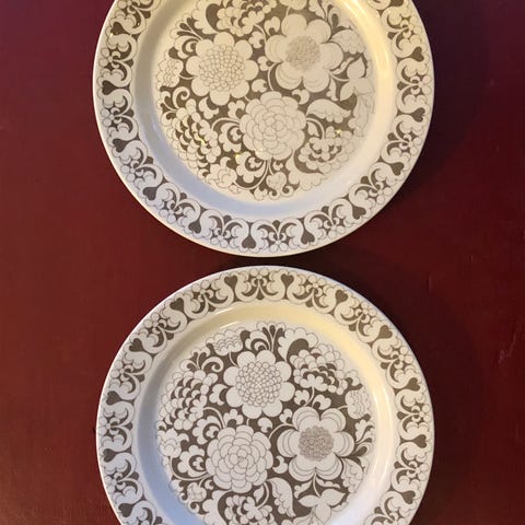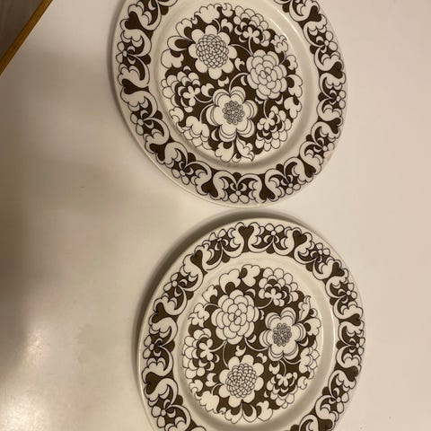 Hyväkuntoinen ruskea/valkoinen Arabian Gardenia lautanen, halkaisija 20,5cm.