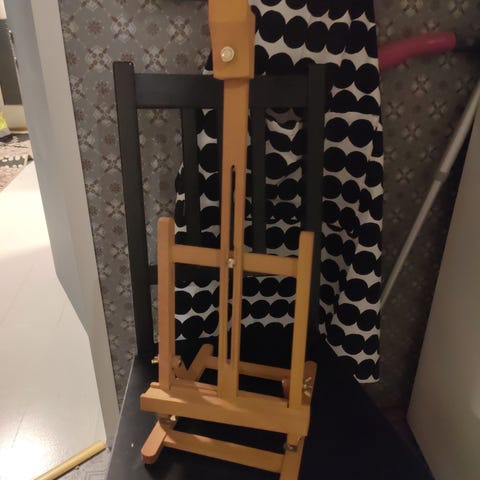 Myydään erinomaisessa kunnossa oleva 3-jalkainen puinen maalausteline.