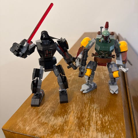 Darth Vader ja Obi-wan Kenobi. Ollut itsellä koristeena. Alkuperäiset osat kaikki tallella. Ohjekirjat ja alkuperäinen paketti. Mukaan saa USB-valomiekat, nämä eivät ole virallisia Lego osia.