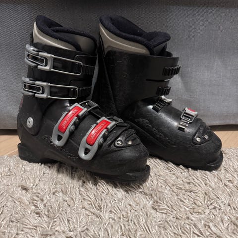 Nordica hyväkuntoiset Powah laskettelumonot. Monon sisämitta 200-215mm & ulkomitta 255mm, vastaavat noin 33-34 kokoa.