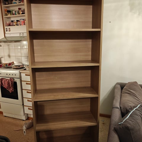 Muuton takia luovutaan kirjahyllystä. Toki tyhjennän hyllyn ennen luovutusta.