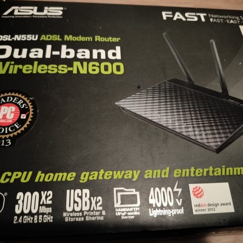 Asus langaton reititin, musta, sisältää virtalähteen.
