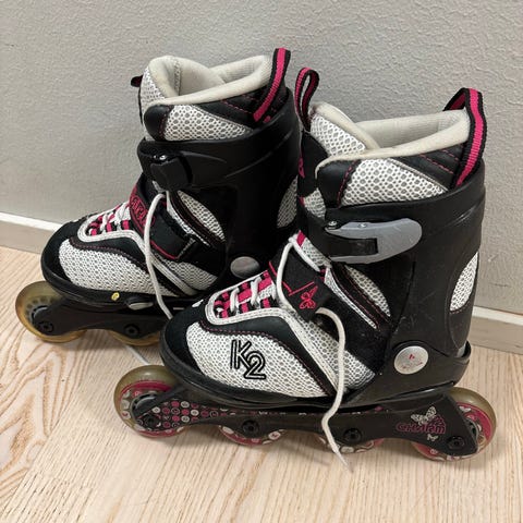 Siistissä kunnossa olevat lasten K2 Raider Pro merkkiset rullaluistimet. Koko säädettävissä 32-37.